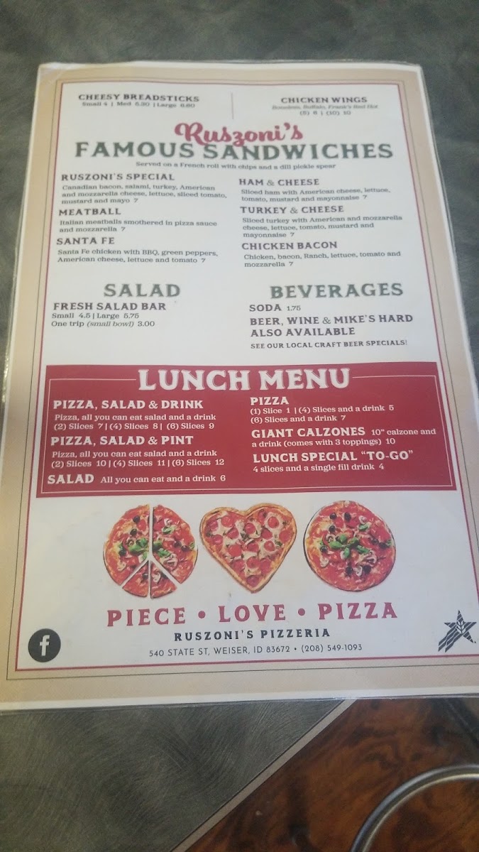 Welcome to Ruszoni's Pizza, a hidden gem located at 540 State St, Weiser, ID, where culinary passion meets affordability. This inviting eatery offers a diverse menu that caters to all tastes. Begin your meal with their famed salad bar, boasting three levels of fresh ingredients—perfect for any salad lover.